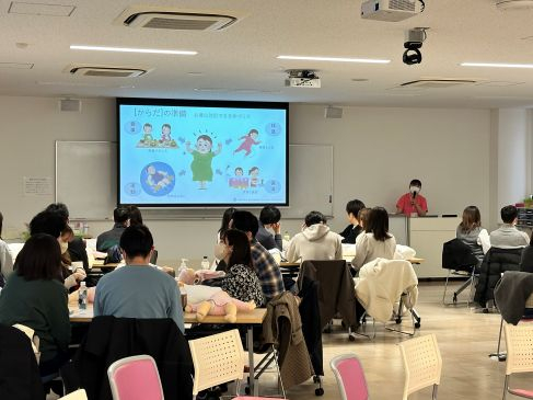 今年度で12年目を迎える妊娠後期すこやか教室ですが、今年度は全4回開催し、妊婦さんおよびご家族の方総勢90名にご参加いただきました。