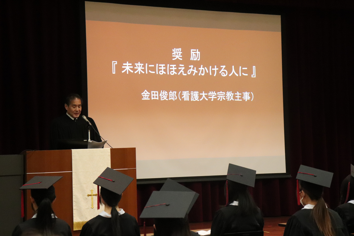卒業式の前日、4年生にとって最後の礼拝となる「卒業礼拝」が行われました。金田宗教主事は、『未来にほほえみかける人に』と題して奨励されました。