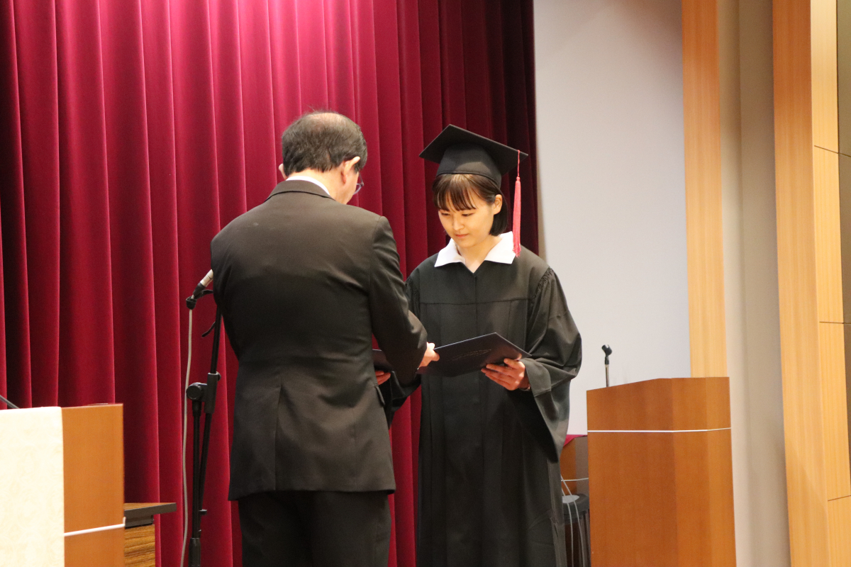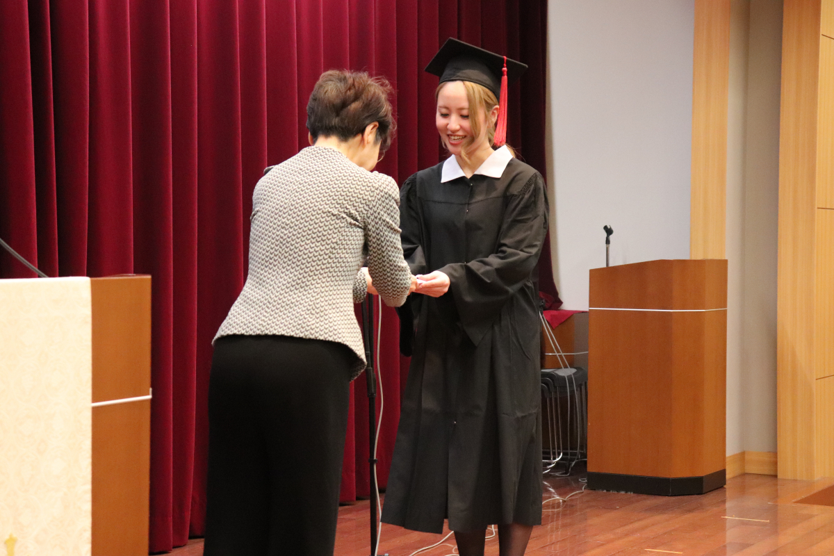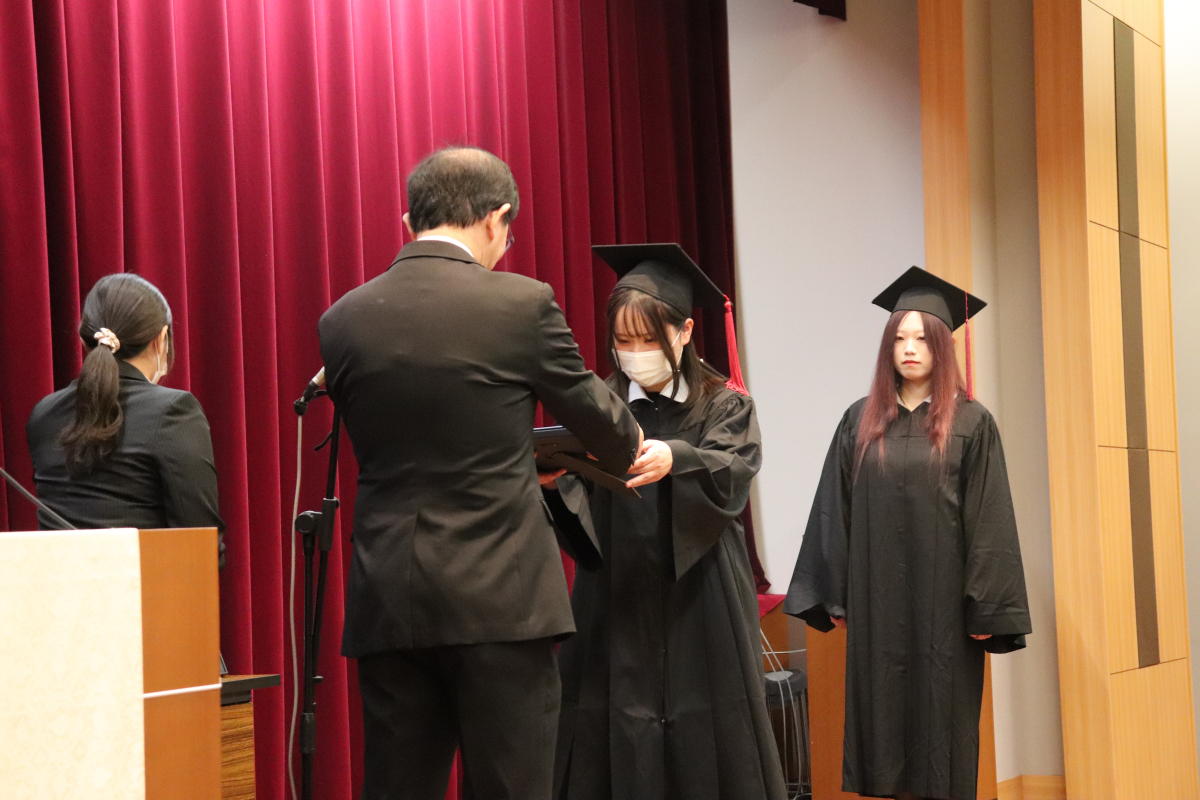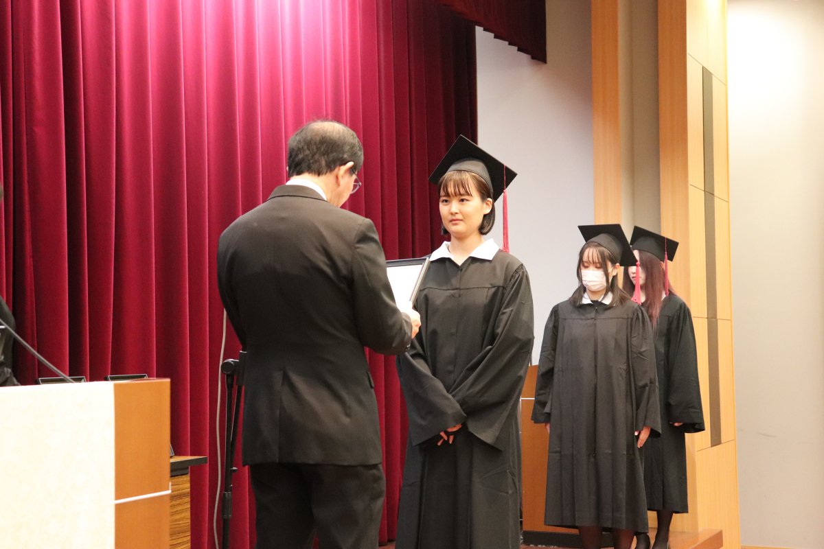 また、4年間で最も優秀な成績をおさめた学生1名に、日本私立看護系大学協会会長賞の表彰と記念品が贈られました。