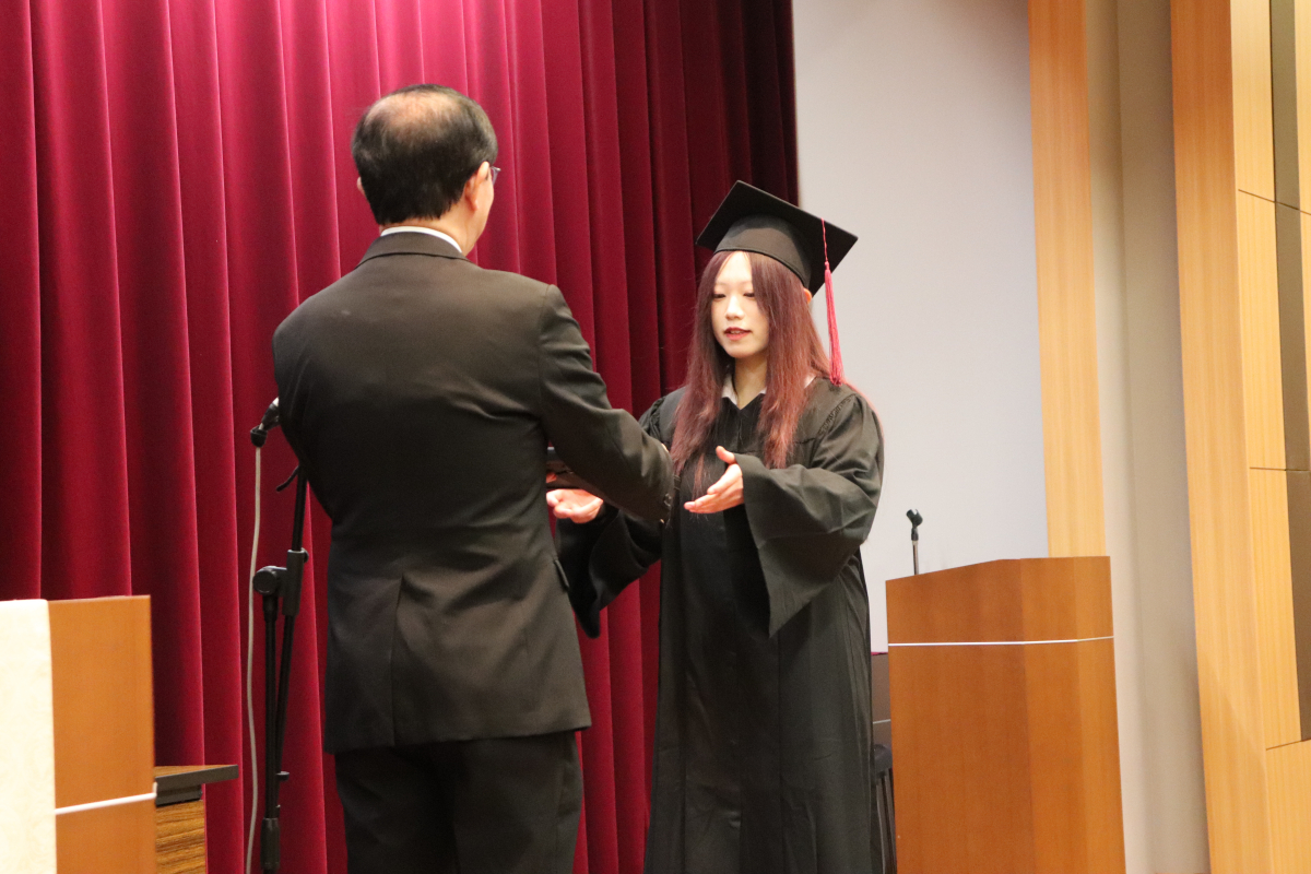 礼拝の後には、今年一年間で、優秀な成績をおさめた3名の学生が学業優秀者として表彰されました。