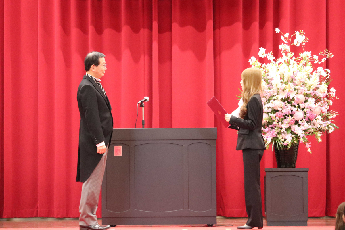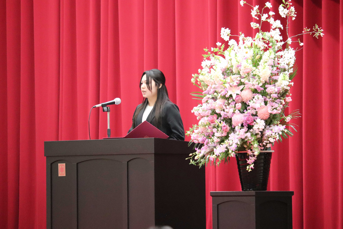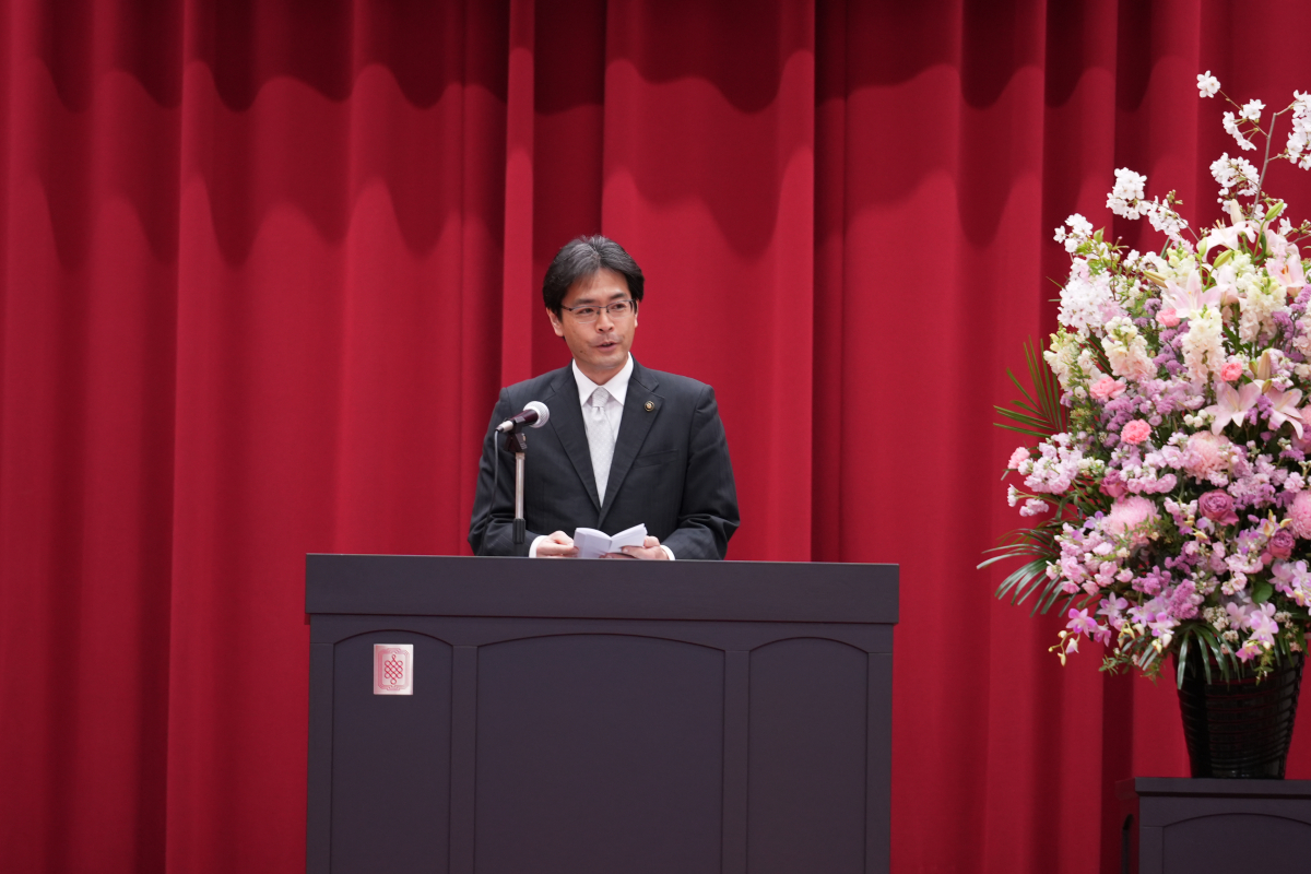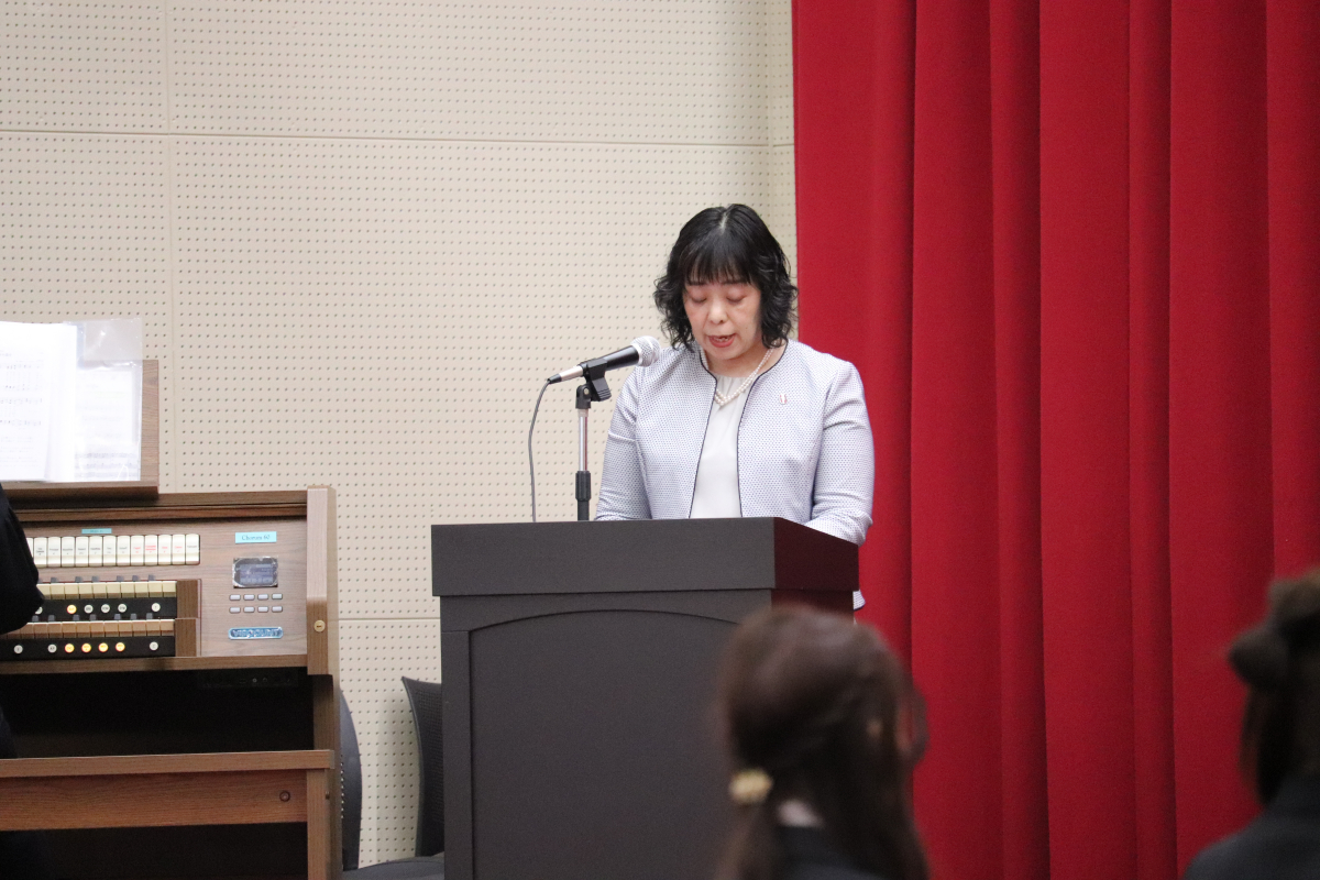 福岡女学院同窓会会長 野田 幸子様からは、新入生を歓迎するお祝いの言葉が贈られました。