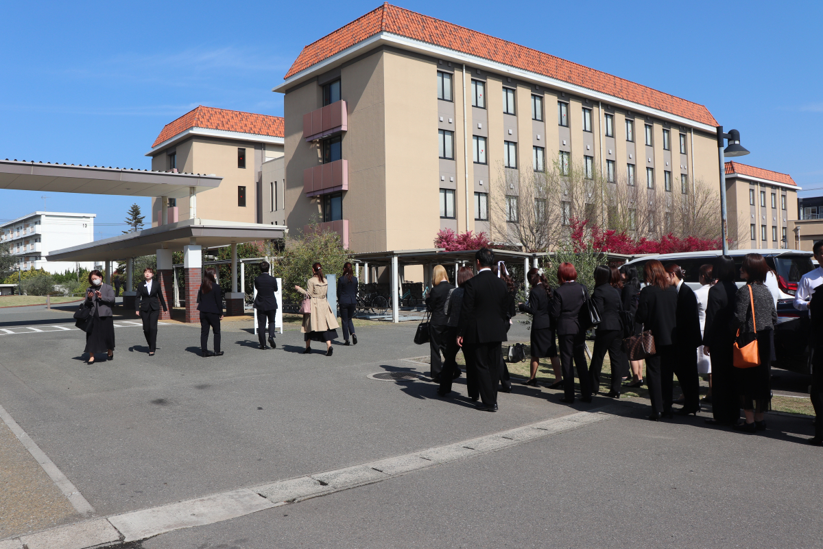 4月3日(金)、2026年度入学式が3号館(德永 徹記念多目的ホール)で行われ、学部生と大学院生が入学しました。オリーブの木に囲まれた緑豊かなキャンパスには、新入生の入学を心待ちにしていたように満開の桜が咲きました。