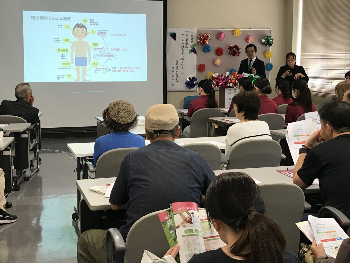 午前は、本学の学長 松永 彰先生による「生活習慣病、よくある病気から体を守ろう」をテーマにした公開講座を開催いたしました。
