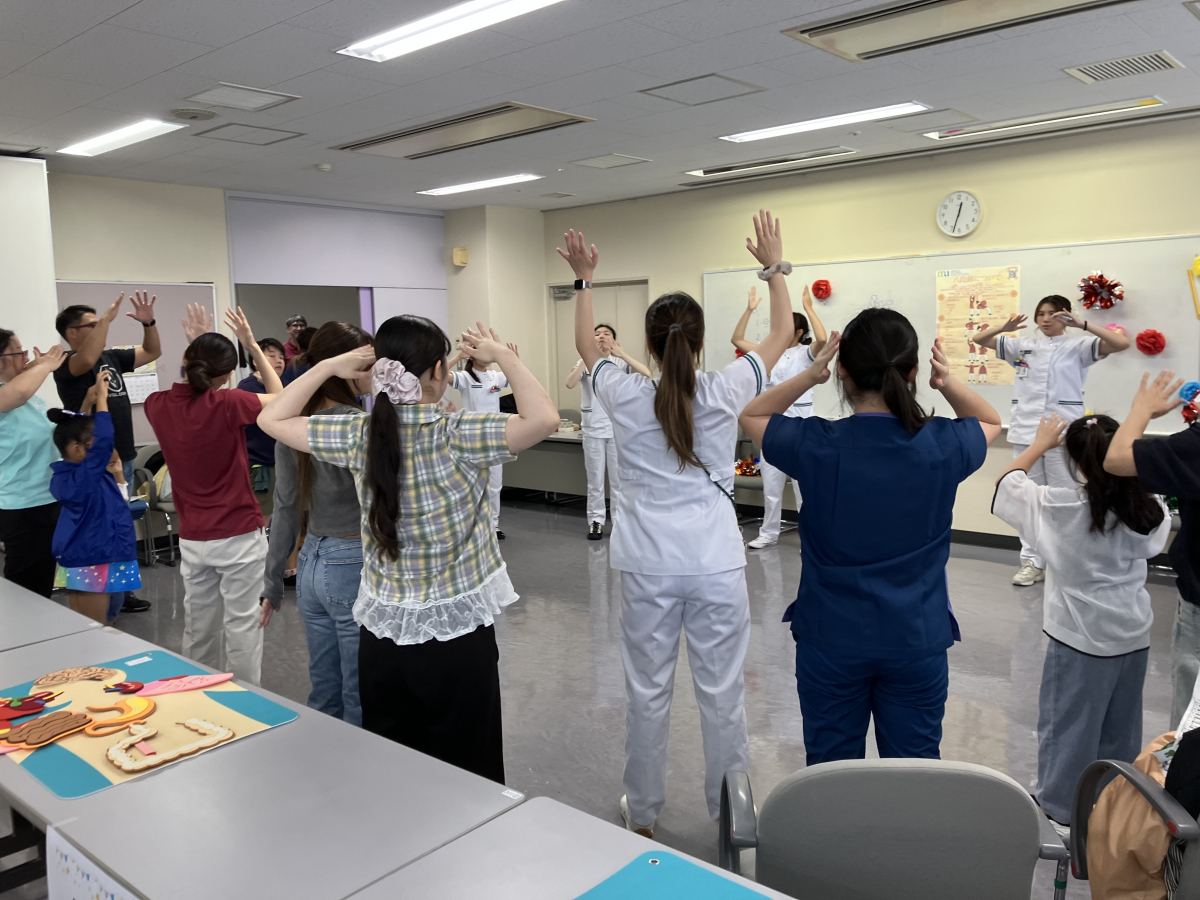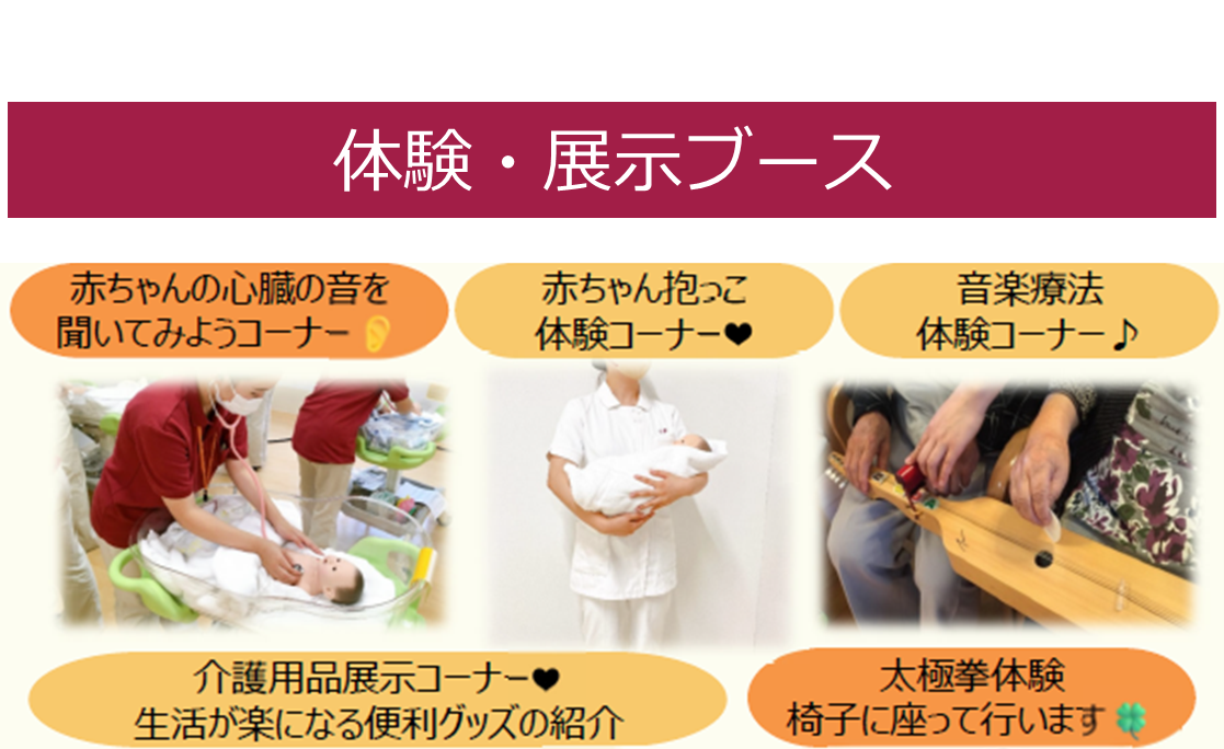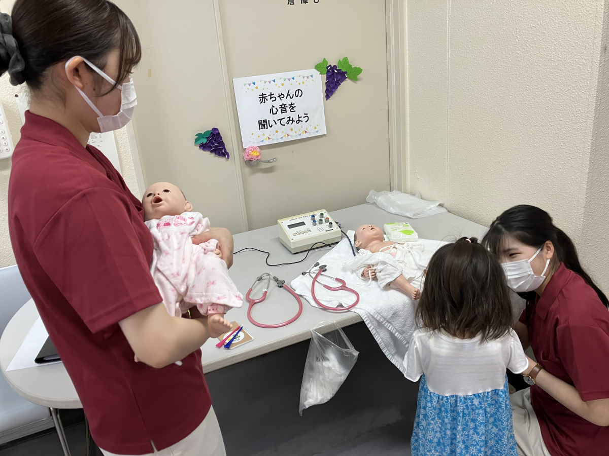 赤ちゃんの抱っこやオムツ交換、心臓や呼吸の音を聞く等の新生児体験に加え、音楽療法の体験や介護