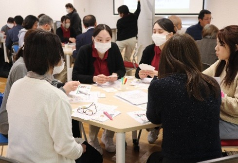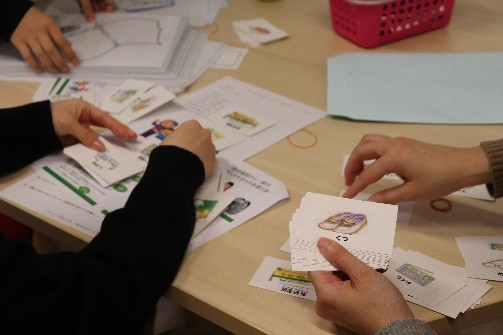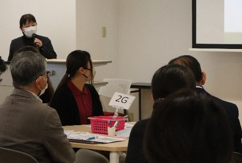 災害対策には、日常生活の中で防災の視点をもち、“もしも…”を“いつも”に繋げ、防災意識を身に着けることが必要です。本セミナーでは、家族構成や災害状況を想定して、防災グッズを選ぶ体験を行いました。想定した状況に必要な防災グッズは何か、グループメンバーで話し合いながら10品目を選びました。発表では各グループの相違点があり、理由を聞きながら、深くうなずく場面も見受けられました。緊急時に優先度を考え、持ち出す物品を決めるのは至難の業です。日頃から、想定しておくことの重要性を痛感できる体験でした。
